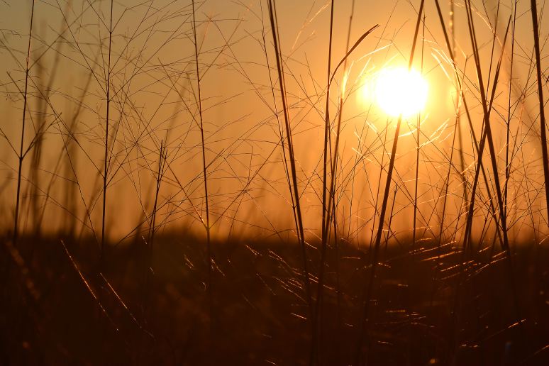 Willowy prairie plants at day’s end resemble a veritable web of golden radiance.