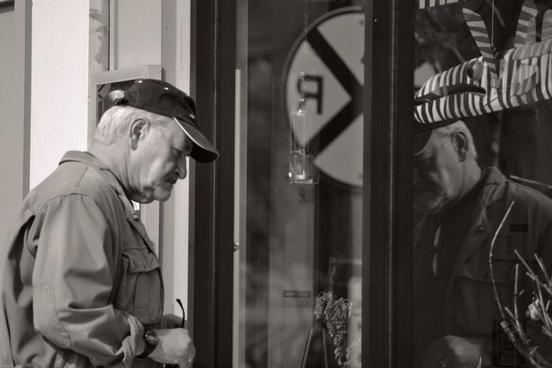 I love this shot Brian. I wonder what the man is studying – and whether he’ll buy it!
