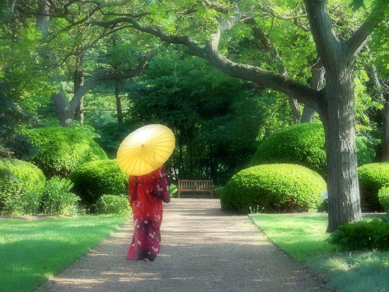 Lovely! Were you surprised to see a red kimono and a yellow umbrella in an park in Illinois?