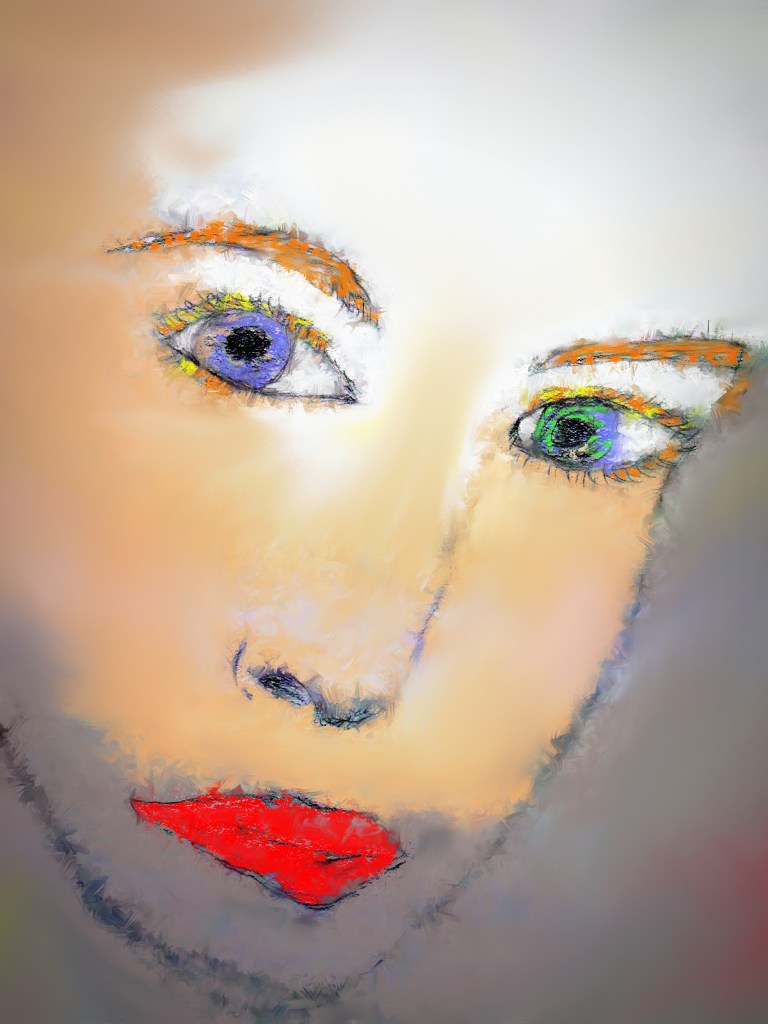 Love your wife’s gestural painting! Pulls the viewer’s eye into the woman’s eyes… intensely staring back at us… the gaze almost drifts off our eyes and to the left… mysterious indeed! Who is this woman? Where did she come from? Love the brushwork. thank you so much for sharing! 🙂